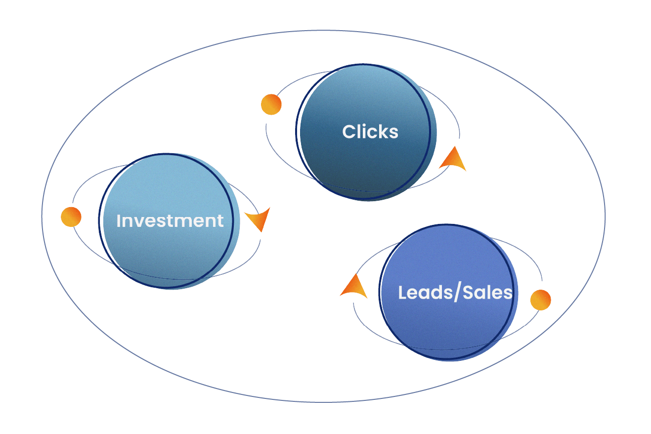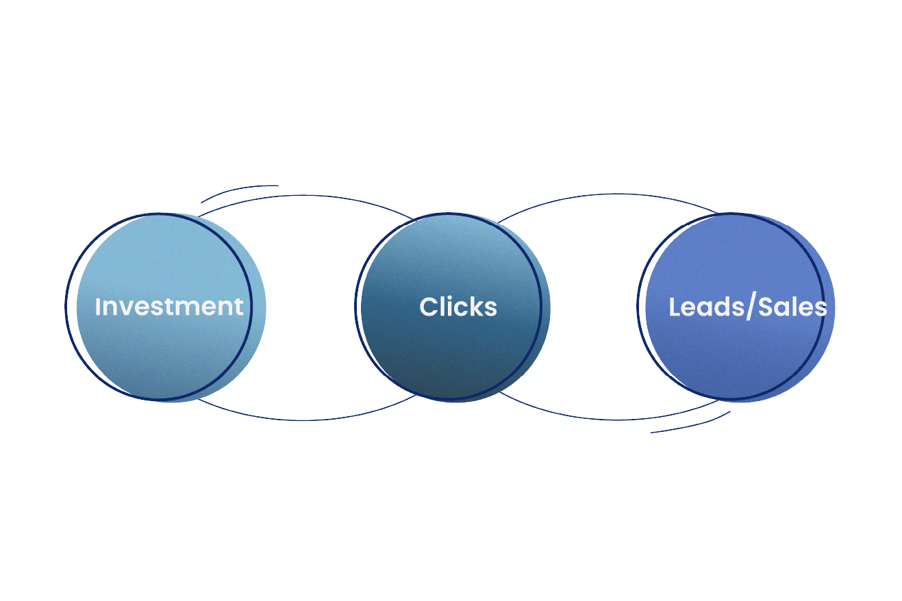 From left to right, the investment, the impressions, the clicks, and the conversions. Indeed, without any investment, you cannot generate impressions, without impressions, you cannot generate clicks, without clicks you can't generate conversions while all other KPIs remain the same. As simple as that.